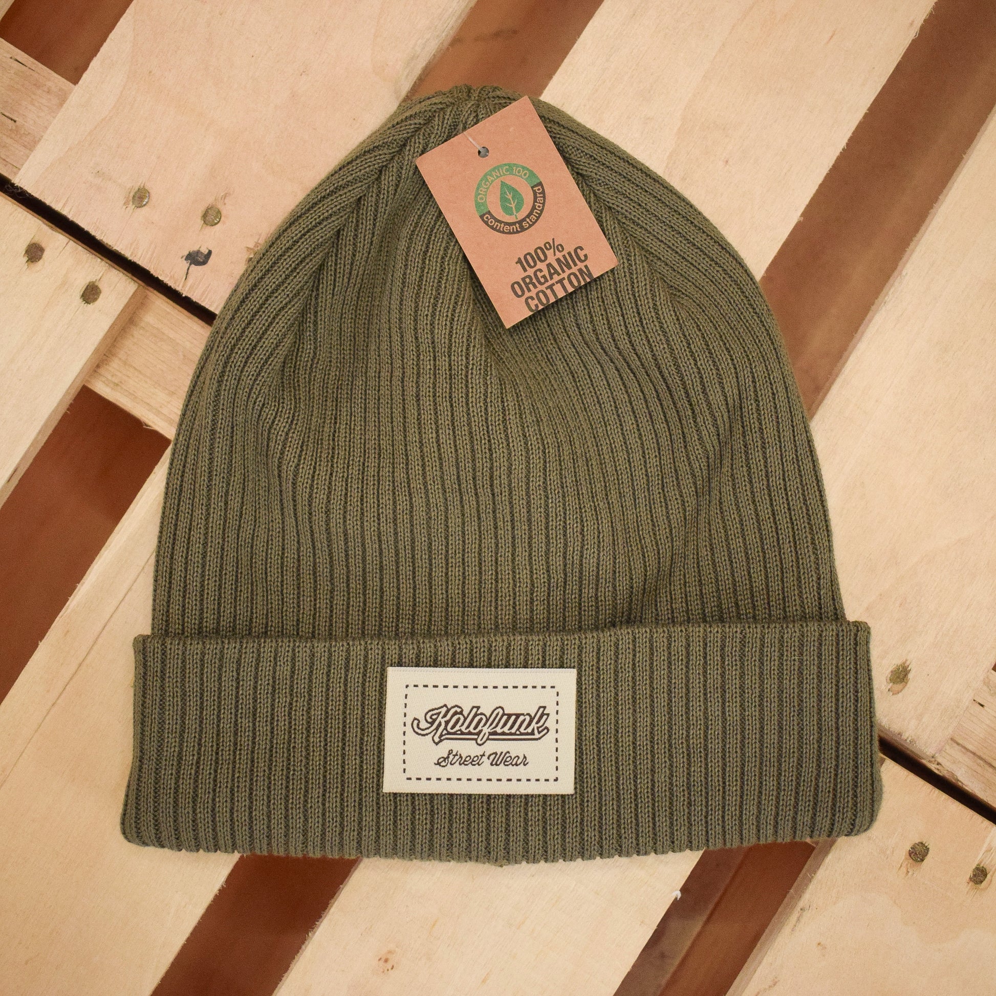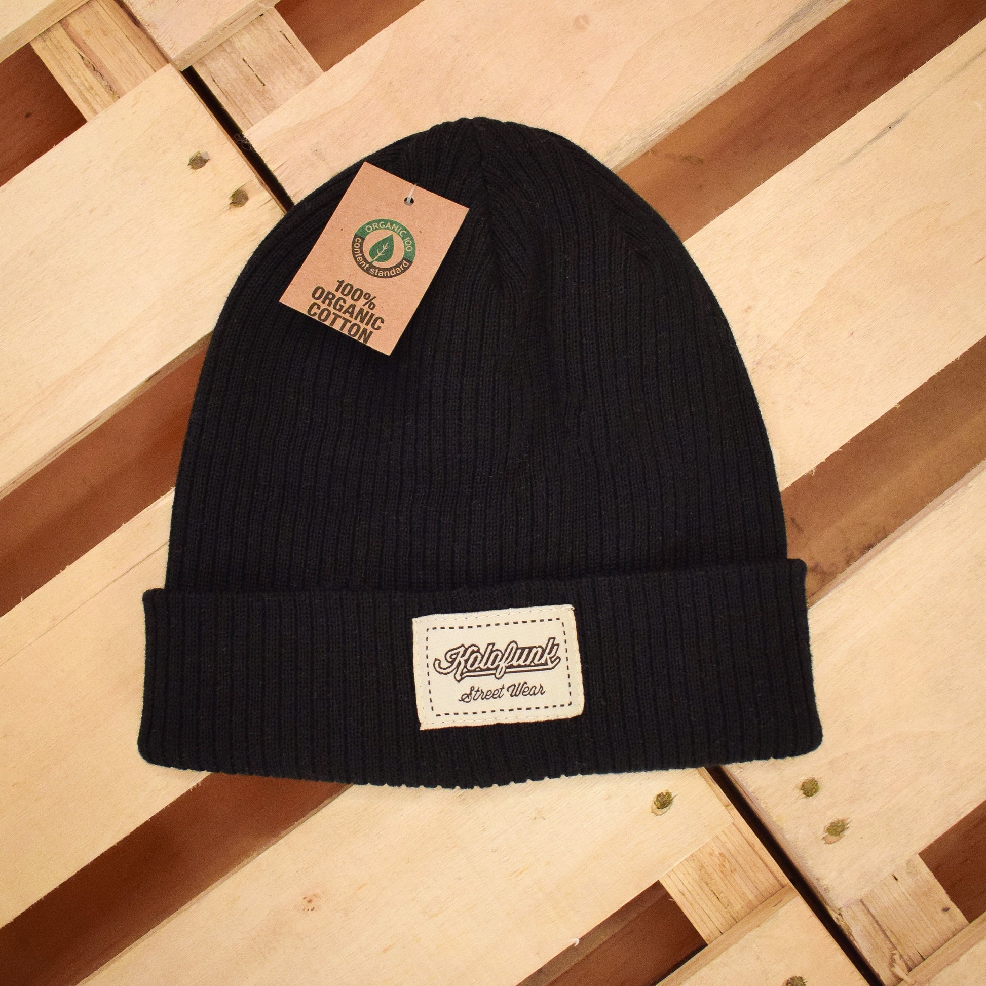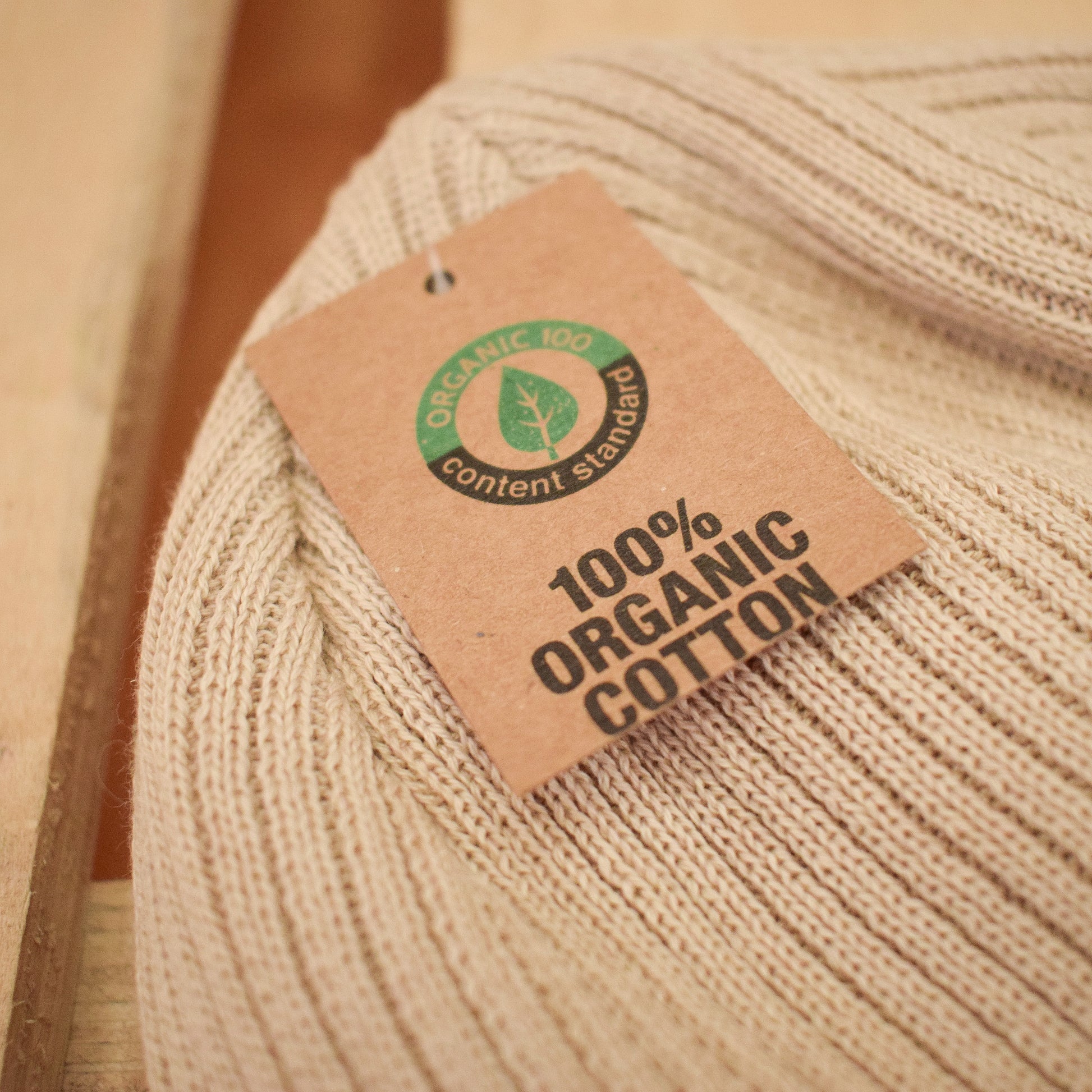 Gorro 100% algodón orgánico disponible en tres colores con tejido de canalé