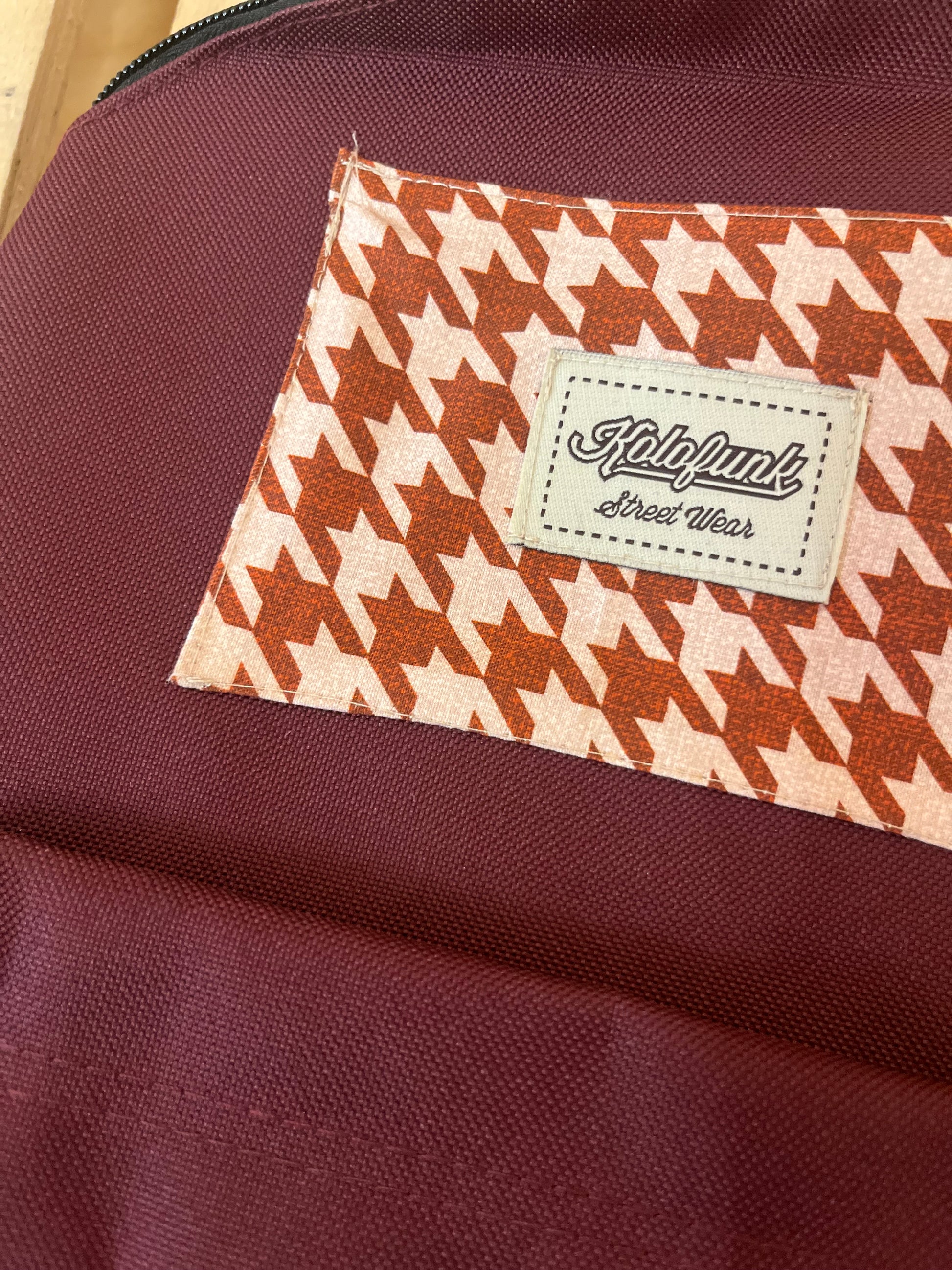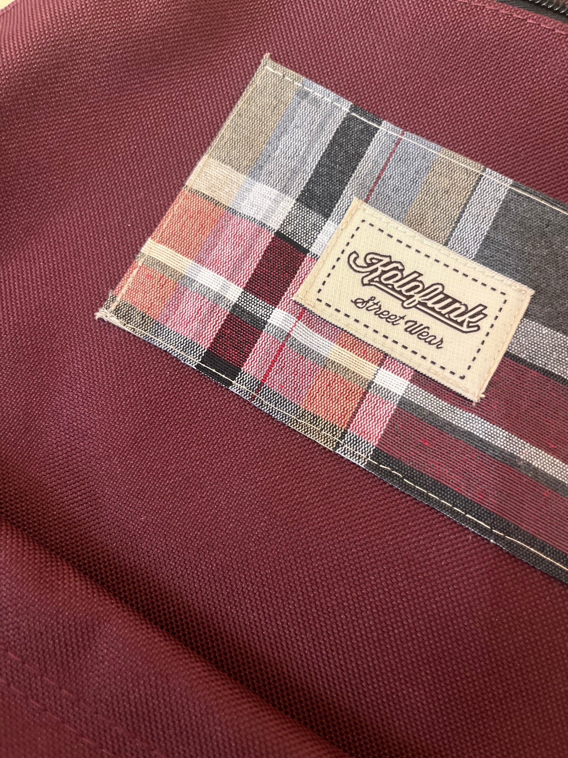 Mochila de poliéster reciclado con parche estampado cosido a mano, cada mochila tiene un parche diferente, no hay dos iguales